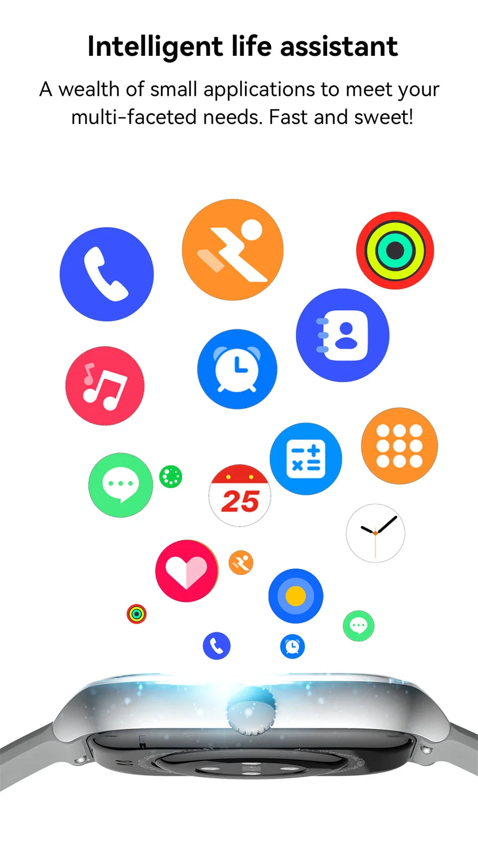 This smartwatch delivers both emotional satisfaction and practical advantages, helping you stay motivated toward your wellness goals while simplifying everyday communication. Whether you’re hitting the gym, going for a run, or managing your busy schedule, this device keeps you informed and inspired. With a vibrant 2.01-inch AMOLED full touch screen, it’s easy to navigate through your activity stats and notification alerts, making your fitness journey and daily routine smarter and more enjoyable.