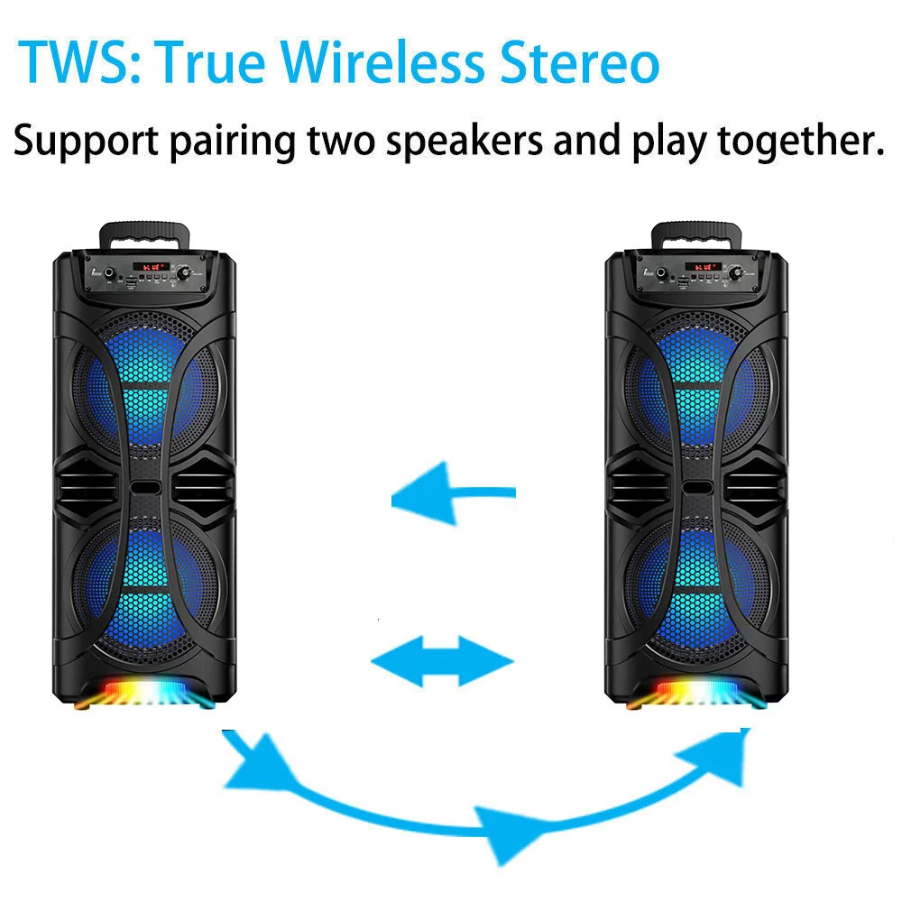 6800W Portable Bluetooth Speaker Sound System Party Led Light Rechargeable Outdoor Loud KaraokeDual 8 " Speaker USB TWS