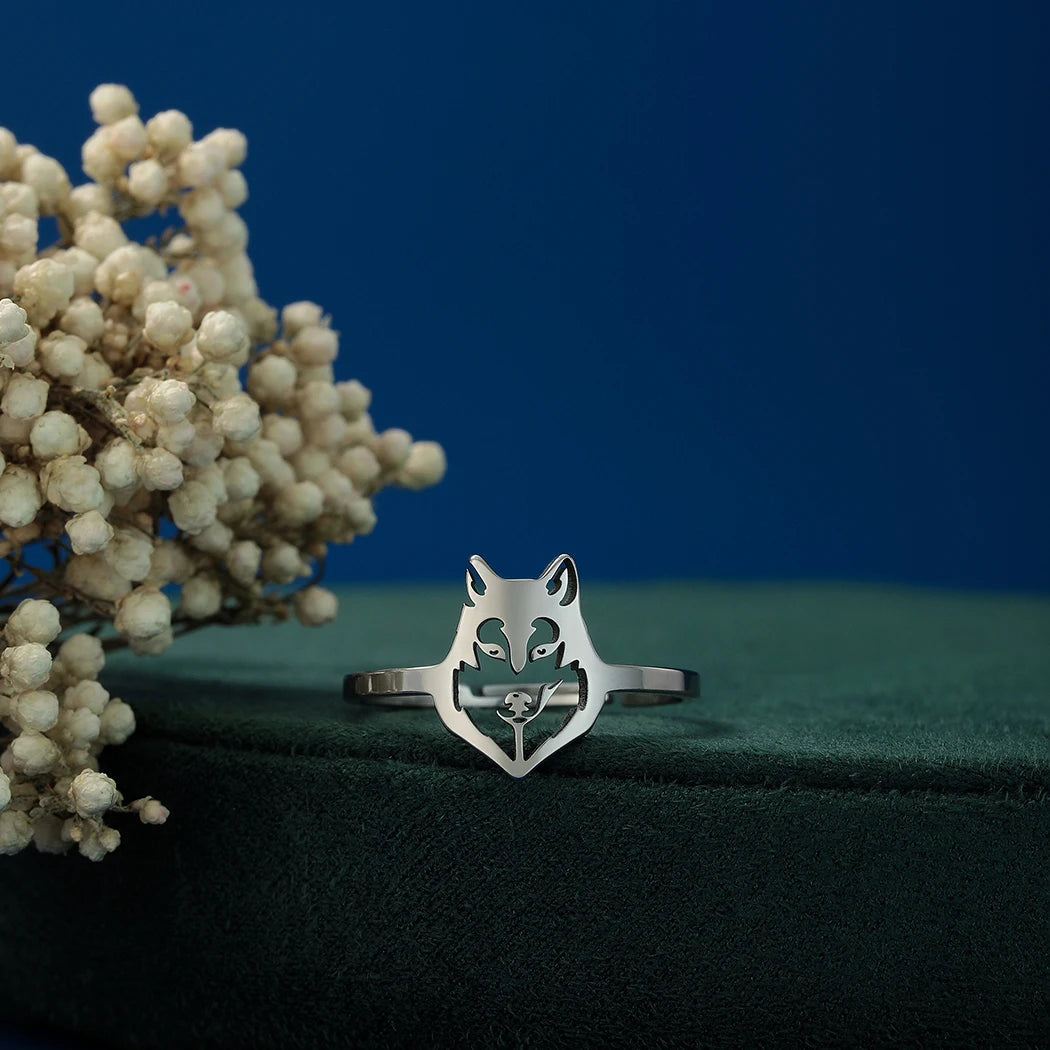 Stainless Steel Men Punk Wolf Head Rings for Women Unisex Open Adjustable Jewelry Male Finger Rings Hip Hop Trendy Gifts