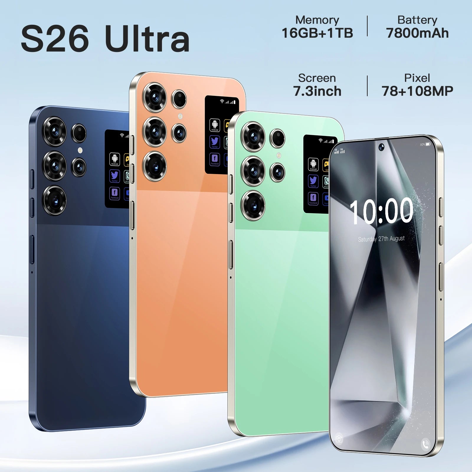 Hot Selling S26 Ultra Original 5G Smartphone 16GB+1TB 72MP+108MP Dual Camera HD Full Display Android 14 Face Unlock 100W